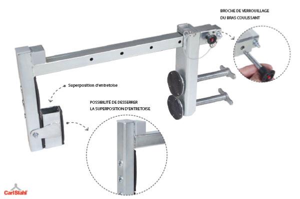 Pour installer le dispositif, il est nécessaire de pré-régler sa largeur, en déplaçant le curseur et en le verrouillant avec une goupille automatique. Puis serrez les deux vis trapézoïdales qui fixeront fermement le dispositif dur le mur.